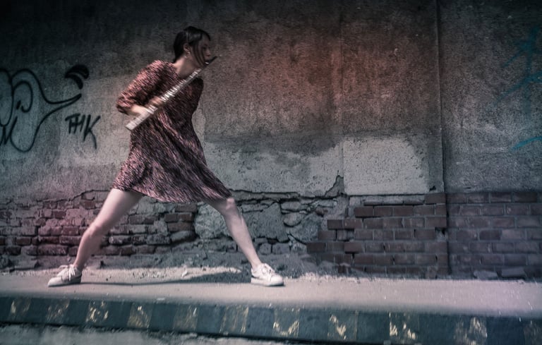 The flute, as a standalone instrument, can be somewhat restricting when it comes to conveying body language and theatricality. However, I am captivated by the challenge of connecting these two elements without compromising the musical essence that is so important to me. Through experimentation and thinking outside the box, I have embarked on a quest to find the delicate balance between musical excellence and the expressive possibilities that arise from integrating movement.