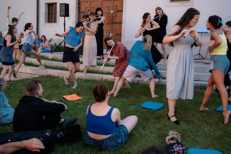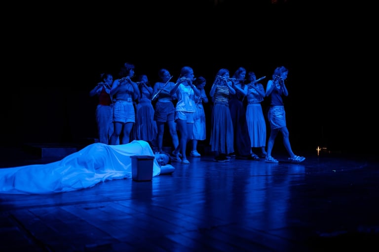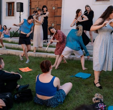 This interdisciplinary performance workshop addresses these needs by introducing students to new ways of thinking, playing, and creating. It blends music, movement, and theater into an immersive experience that equips participants with valuable skills for their artistic and professional futures.