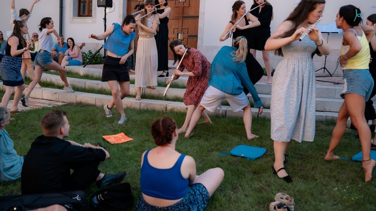 It's an interdisciplinary performance combining sonic storytelling, contemporary theatrical movement, and modern flute techniques. The main goal of the project is to offer Lithuanian audiences an interactive experience in which spectators become active participants in the creative process, not merely observers. The performance blurs the boundaries between music, dance, and theatre, creating an interactive and avant-garde experience of sound and movement.